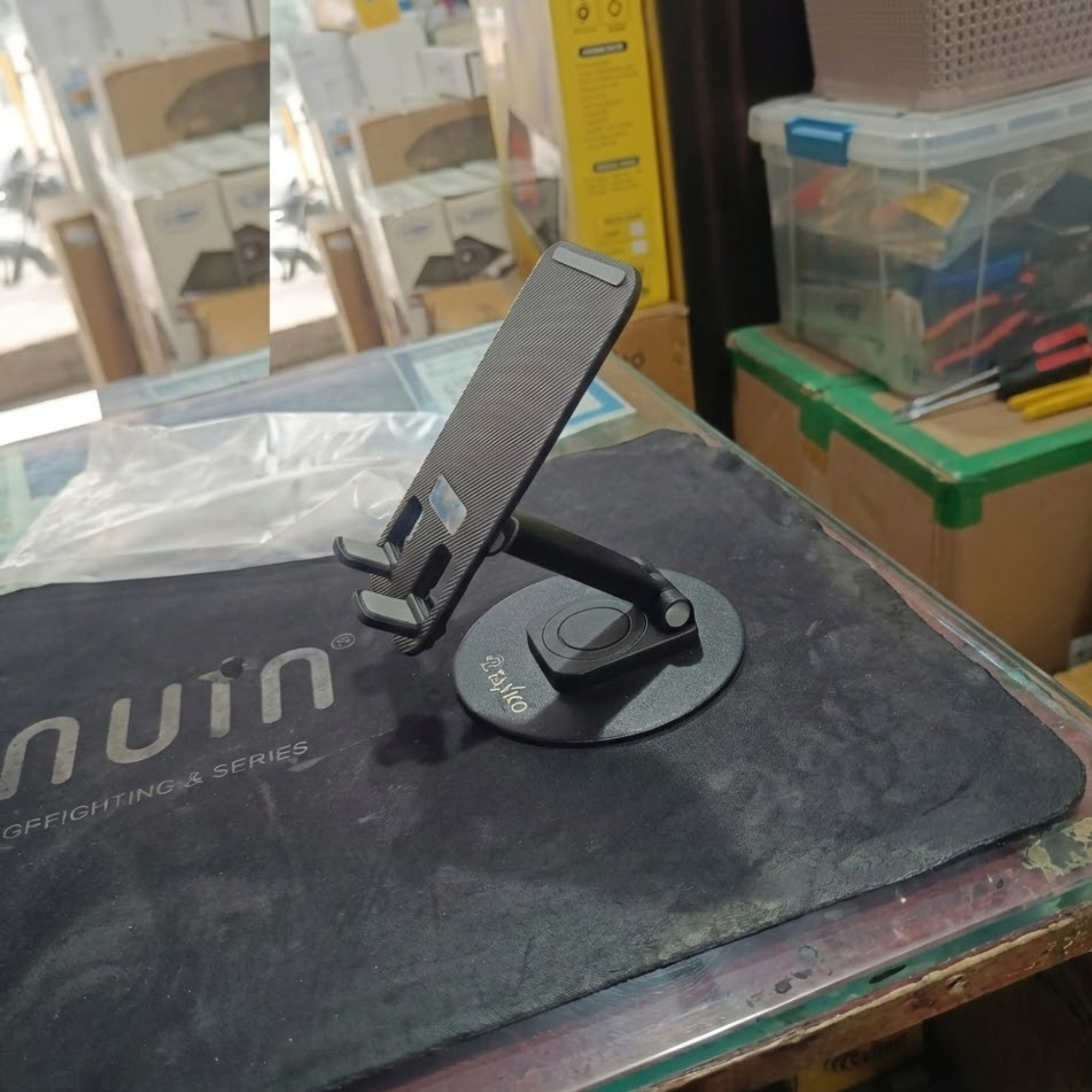 Foldable aur 360° rotatable mobile holder, jo phone aur tablet dono ke liye stable support deta hai. Mini size, strong base aur smooth rotation ke sath daily use ke liye perfect.